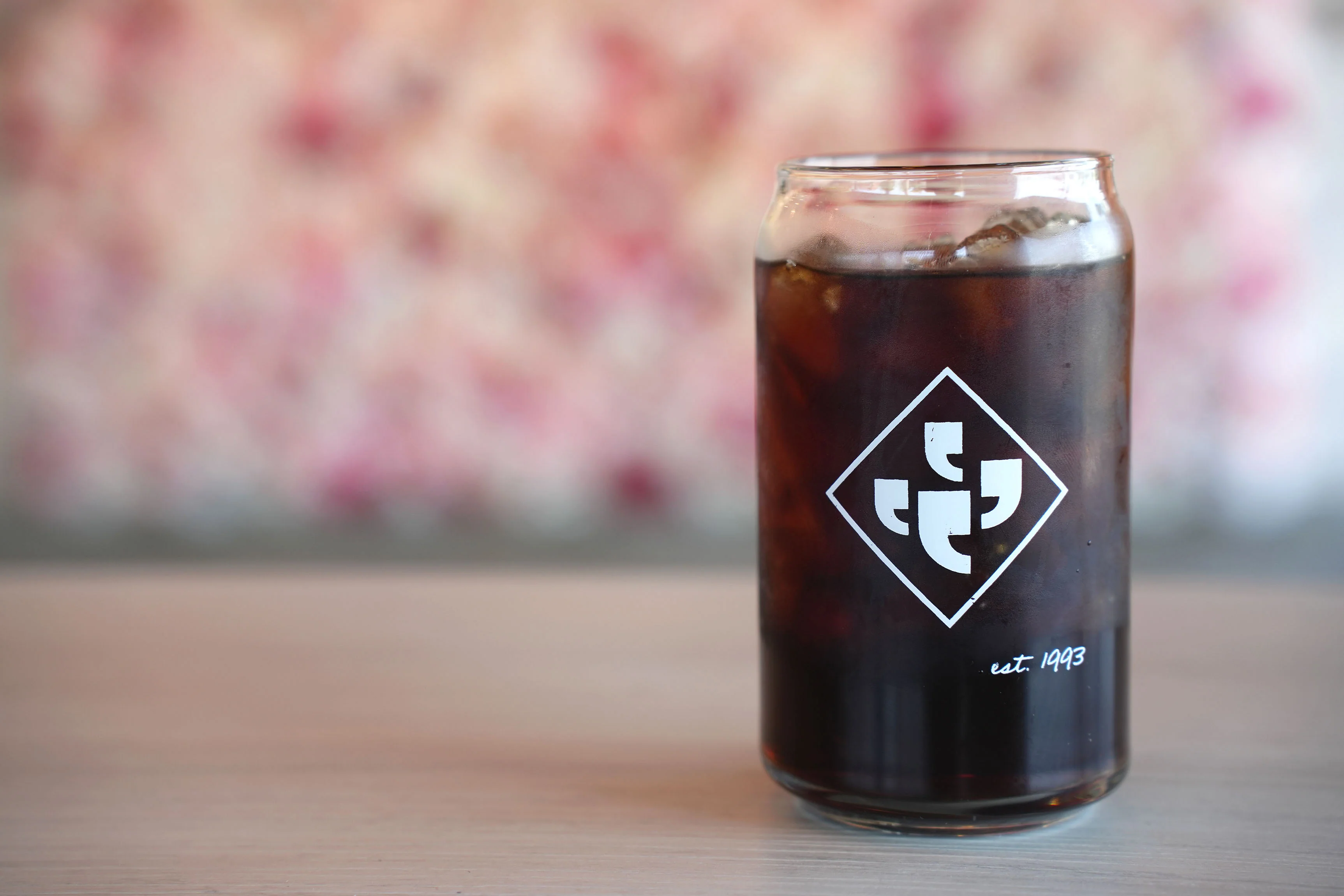 16oz glass can pint glass featuring the 30th Celebration Klatch Coffee logo. A wonderful addition to any collection, and a great way to enjoy your iced coffees!